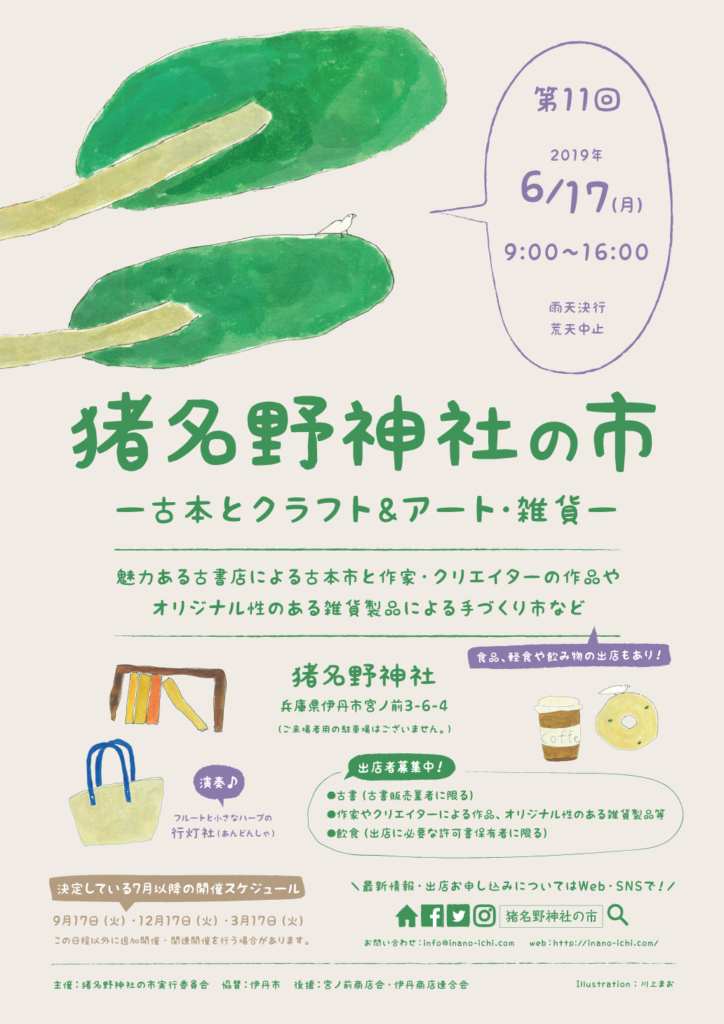 6月17日(月)の来場者アンケートプレゼントは、6月17日当日に「猪名野神社の市」で使える商品券をその場で発行いたします。